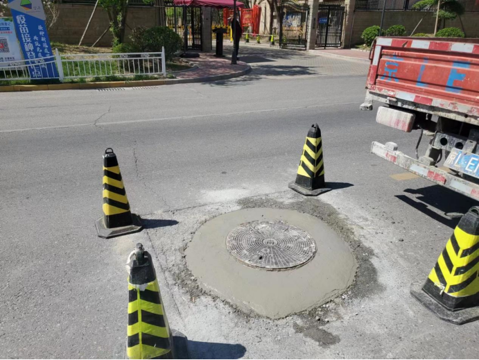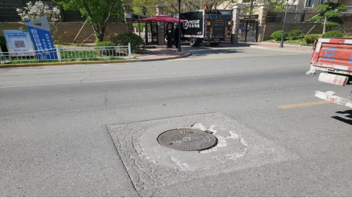 维修前,井盖周围水泥坑洼不平
